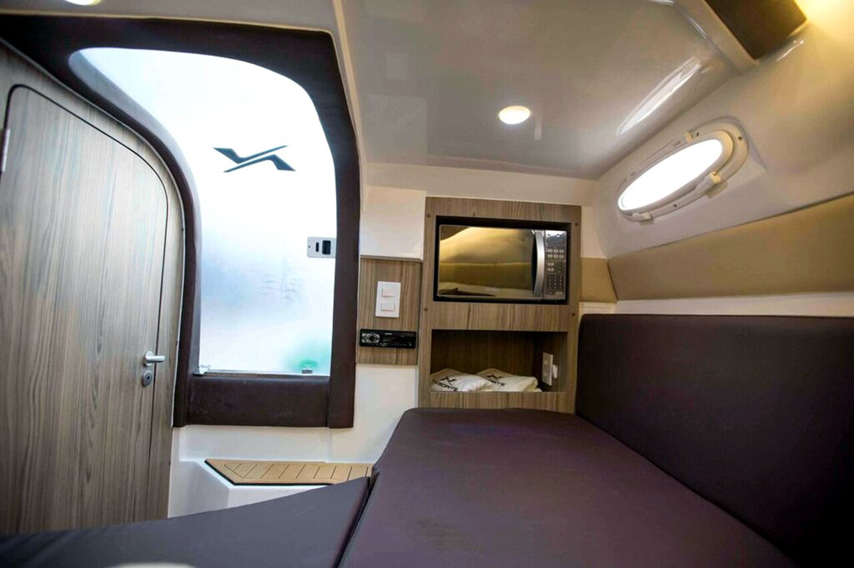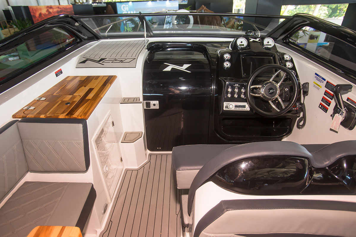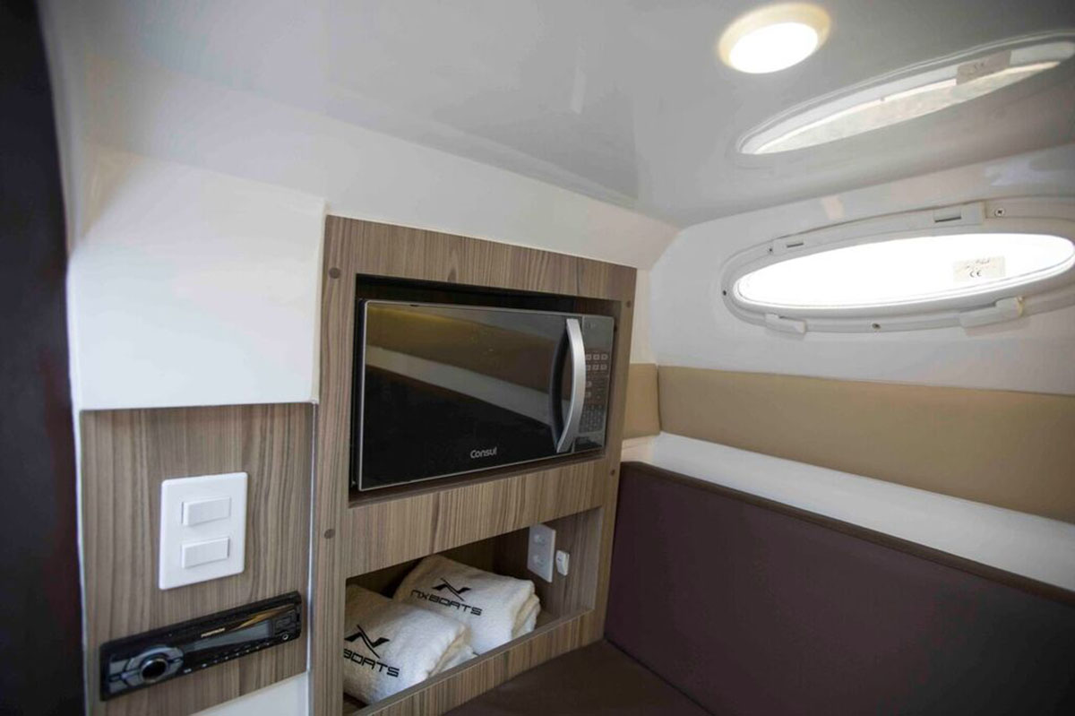 NX270 Challenger integrates the DNA of the NX family. In its category, this model is the most powerful in terms of presence and modern design. Its interior provides extra luxury and unprecedent concept of comfort. This genuine Compact-Premium cabin boat offers everything you desire such as finishing, gourmet area, full-cabin with kitchen, double bed, and private bathroom in the size you’re looking for.
